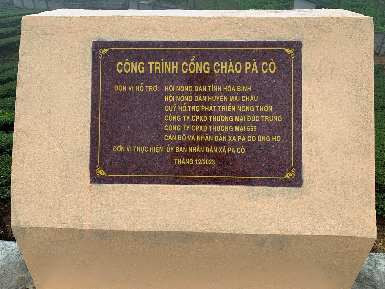 Quỹ Hỗ trợ phát triển nông thôn tự hào là đơn vị tài trợ chính, cùng với Hội Nông dân tỉnh Hòa Bình, Hội Nông dân huyện và nhân dân xóm Chà Đáy (xã Pà Cò) và một số nhà hảo tâm đóng góp xây dựng, hoàn thành Cổng chào Pà Cò.