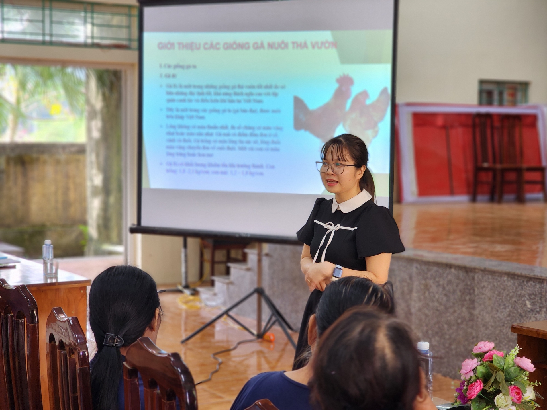 Tại đây các học viên đã được giảng viên Nguyễn Thị Huyền Trang - Cán bộ Trung tâm dịch vụ nông nghiệp Thành phố Hòa Bình truyền đạt nhiều kiến thức bổ ích về chăn nuôi gia súc, gia cầm như: cách giữ đàn vật nuôi trong môi trường được bảo vệ, chăm sóc nuôi dưỡng và quản lý tốt; chuẩn bị chuồng trại, chăn nuôi an toàn sinh học; cách kiểm soát một số bệnh trên đàn gà, trâu, bò, nhất là một số bệnh hay xảy ra trong mùa lạnh; hướng dẫn vệ sinh, khử trùng và tiêu độc trong chăn nuôi khi có dịch bệnh xảy ra… Đồng thời, hướng dẫn các học viên về cách chọn lựa giống, thức ăn, thuốc, dụng cụ, vắc xin phòng chống dịch bệnh.